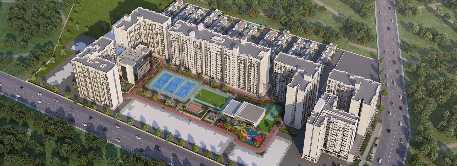 Spread over 22 acres, the project boasts of 3 acres of open green spaces, a recreational zone spread over 6 storeys and 6700 sq. meters and countless corners to learn, grow and spend quality time with the family. The project is made with the concept of ChildCentric® Homes with celebrity led learning academies for sports and performing arts where children can discover their inner spark.